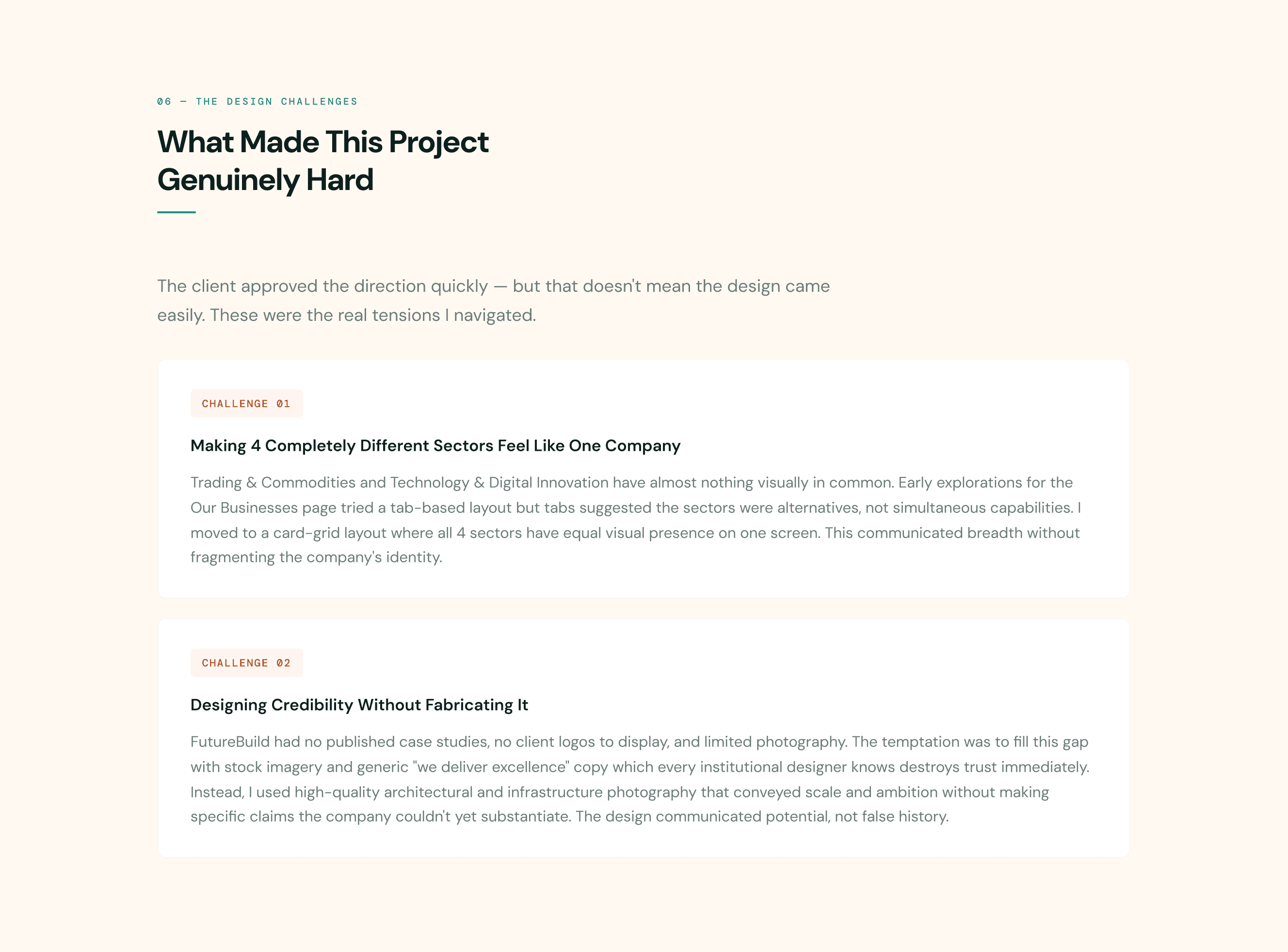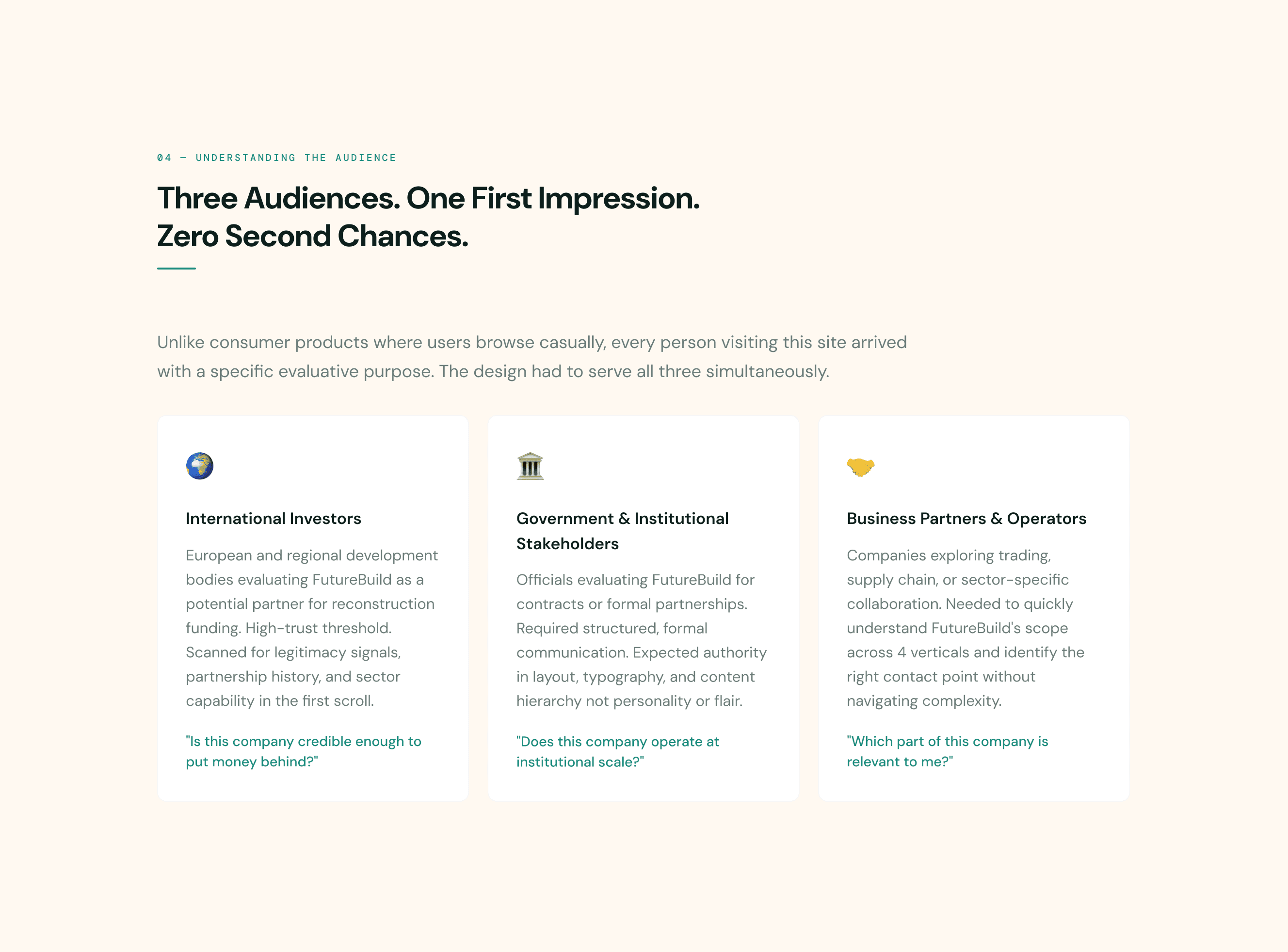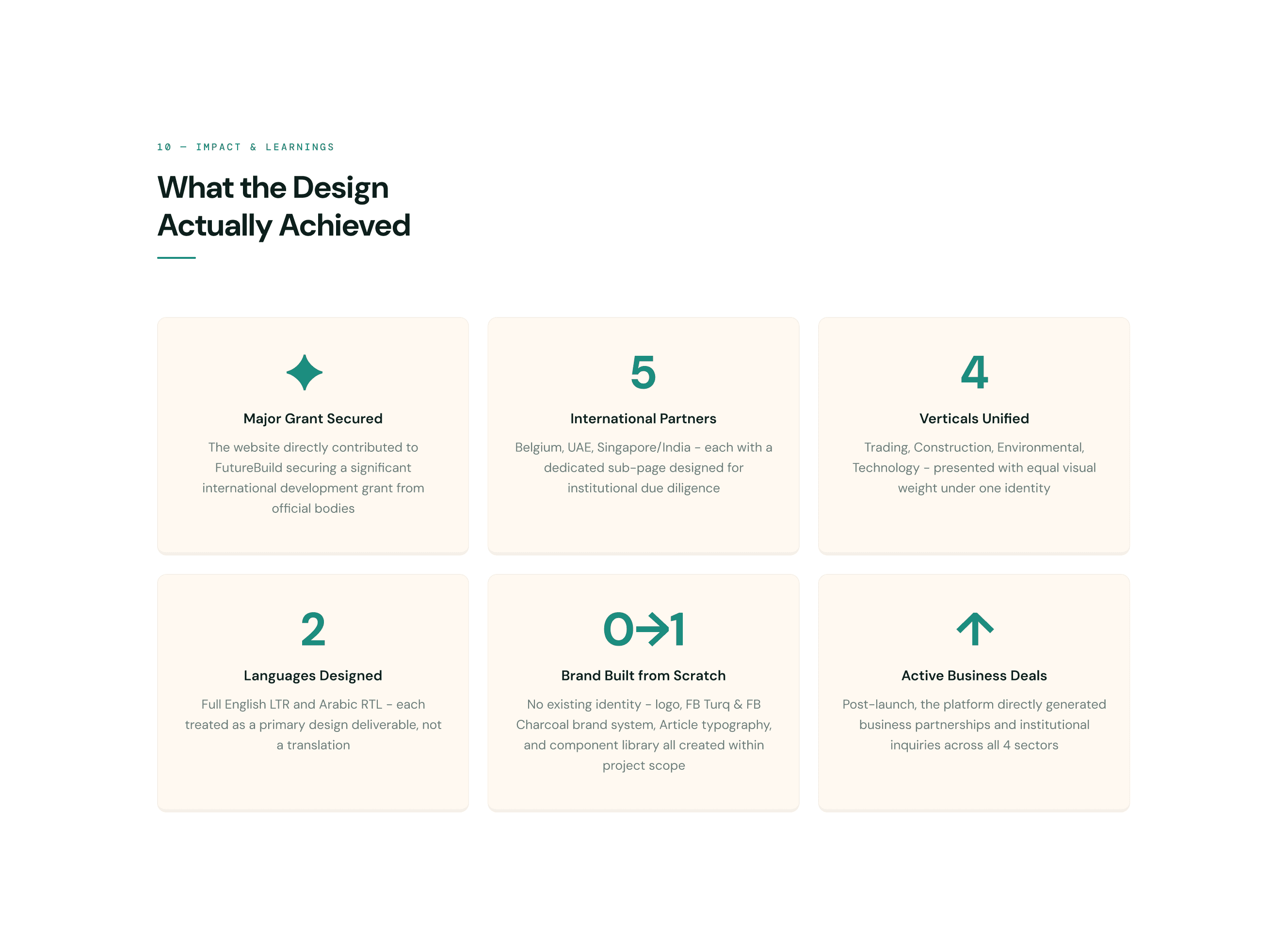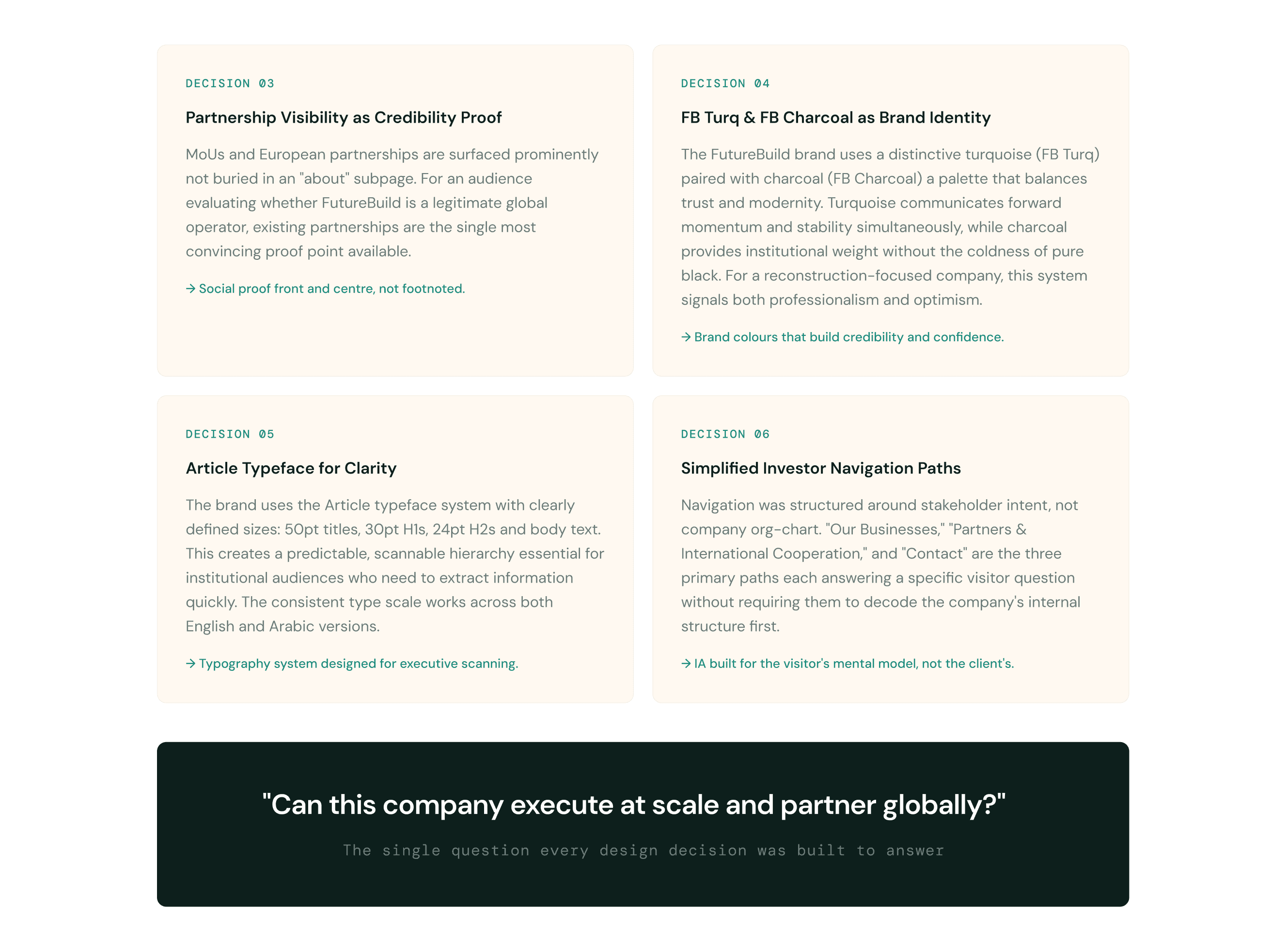 FutureBuild had no digital presence, no existing brand, and operated across 4 completely different business sectors trading, construction, environmental solutions, and technology. International investors and government stakeholders needed to evaluate them as a credible global partner within seconds of landing on the site.